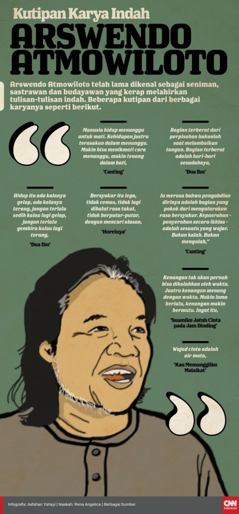 Di antara semua karya Arswendo yang telah lahir dan populer, CNNIndonesia.com mengenang lima karyanya yang menjadi warisan sastra di tengah masyarakat.