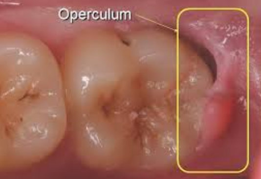 Jaringan lunak meliputi gigi yang erupsi sebagian dikenal sebagai operkulum, daerah yang sulit untuk dicapai saat menyikat gigi dengan metode biasa. Sinonim operkulitis teknis mengacu pada peradangan pada operkulum saja.