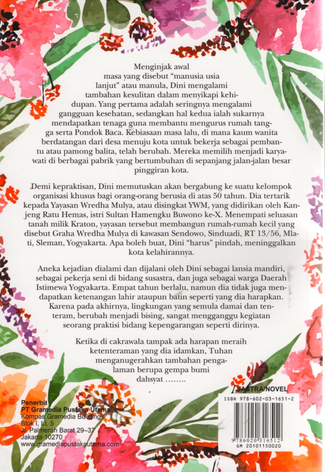 Masih menggunakan gaya bahasanya yang lembut ‘miyayeni’ tapi menyengat, Nh. Dini menceritakan serangkaian perjalanan kehidupannya di ambang usia 70 tahun. Perjalanan kehidupannya yang didasari oleh dorong-dorongan pemikiran yang gamblang, pilihan yang didasari dari hati diceritakan begitu bening di buku ini. Bahkan serangkaian pandangan penulis tentang sesuatu hal yang dia lihat, mampu diresapi dengan apik lewat tulisan yang sebisa dapat dikemas dalam kesederhanaan rangkaian kata, guna menggiring pembaca agar tidak jenuh dengan apa yang disuguhkan penulis dalam tiap jengkal cerita di lembaran-lembaran halaman buku setebal 268 halaman ini.