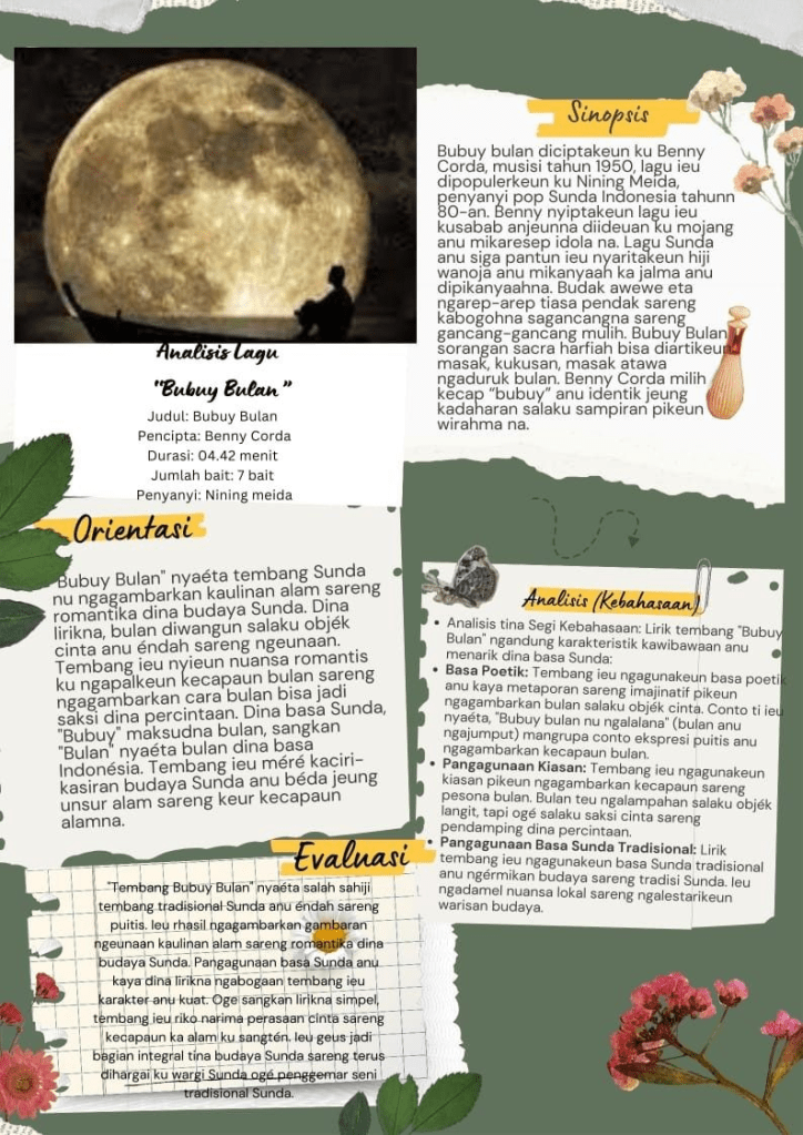 - Penyampaian Emosi: Bahasa puitis dalam Bubuy Bulan membantu menyampaikan emosi kesedihan dan kerinduan dengan cara yang lebih mendalam dan bermakna.