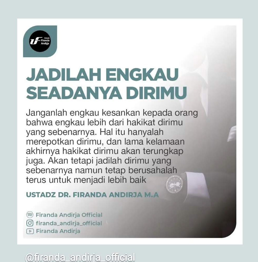 Akan tetapi jadilah dirimu yang sebenarnya namun tetap berusahalah terus menjadi lebih baik.