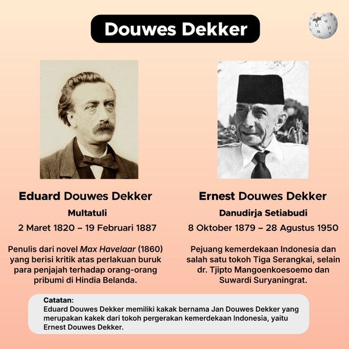 Ada dua orang Douwes Dekker, yang kita kenal dari buku sejarah. Mereka menyandang nama “Douwes Dekker”, tetapi keduanya adalah orang yang berbeda.
