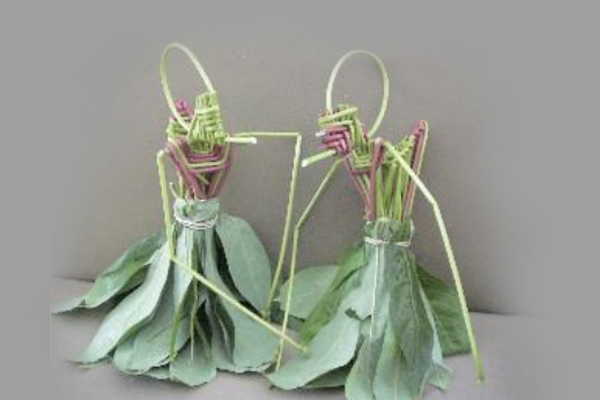 Ranting digunakan untuk menciptakan kerangka wayang yang ringan, sementara daun singkong diukir dengan detail untuk membentuk karakter-karakter dalam pementasan. Meskipun terlihat sederhana, proses ini memerlukan keterampilan ukir yang tinggi dan ketelatenan.