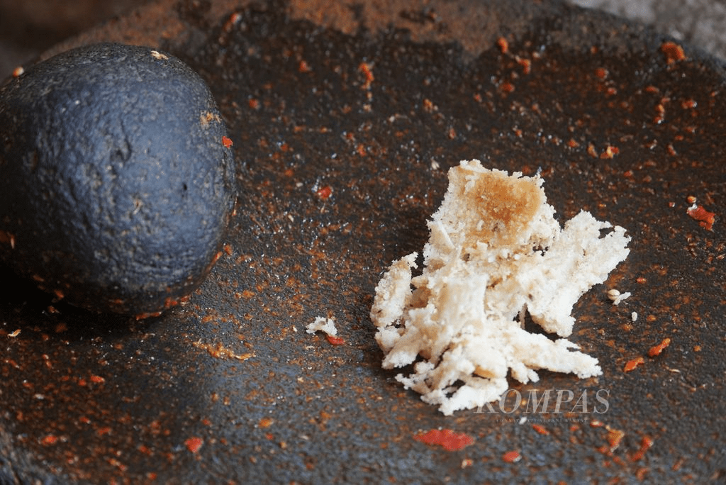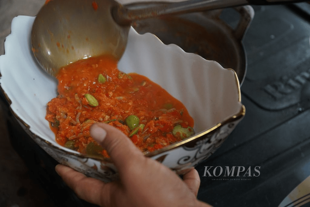Serutan tulang sapi pada sambal cabai ini memberikan rasa tajam yang menggugah selera.