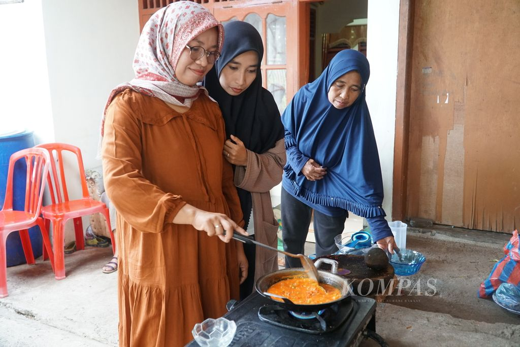 Warga memindahkan samba lado tulang yang telah matang ke wadah, Nagari Parambahan, Kecamatan Limo Kaum, Tanah Datar, Sumatera Barat. Sambal cabai khas Tanah Datar itu biasanya dimasak keluarga untuk makanan sehari-hari.