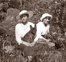 Grand Duchesses Tatiana dan Anastasia dan anjing Ortipo di penangkaran di Tsarskoe Selo pada musim semi tahun 1917