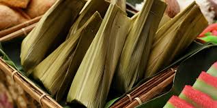 - Lipat daun pandan ke atas hingga berbentuk limas, lalu semat dengan potongan lidi