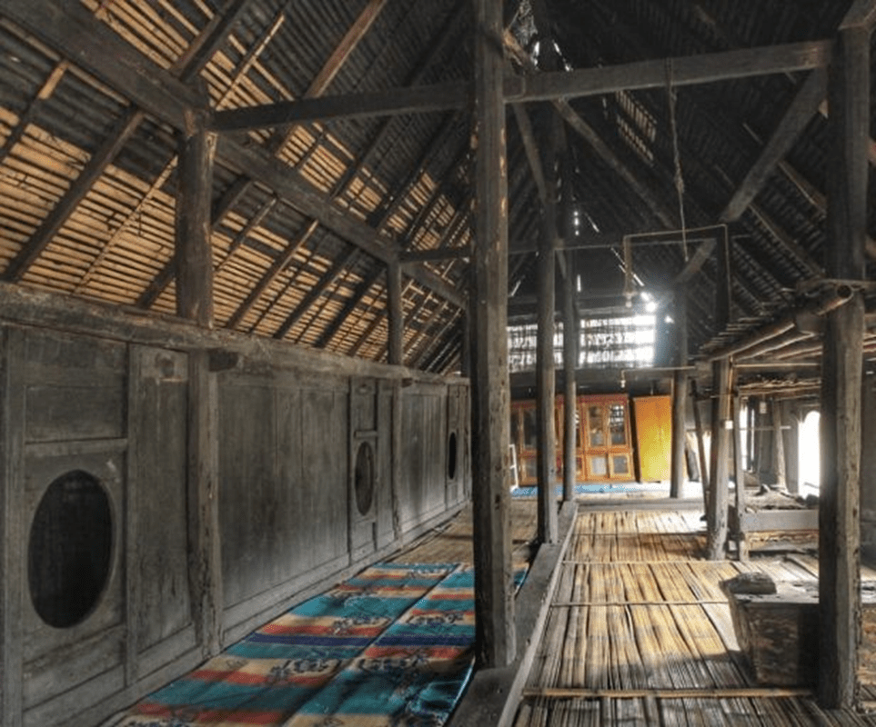 Seperti rumah gadang pada umumnya, rumah ini dibangun tanpa menggunakan paku. Rumah ini tidak berplafon sehingga langsung terlihat tulang-tulang yang menyusun rangka atapnya, hanya di bagian ujung sebelah kiri yang ada bagian seperti loteng tempat penyimpanan. Lantainya rata dan tidak ada anjung di bagian ujung, dilapisi bilah bambu yang bersusun-susun. Sepanjang rumah bagian belakang yang menuju kamar terdapat bagian lantai yang lebih tinggi satu anak tangga membujur serta membentuk huruf “U” ke ujung kiri dan kanan.