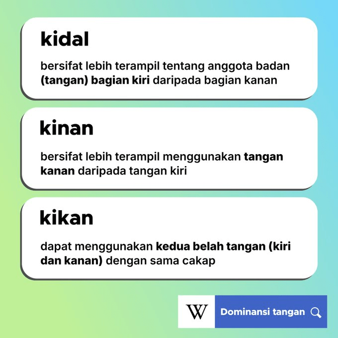 Beberapa istilah untuk menyatakan dominansi tangan adalah kidal, kinan, ambideksteritas, dan dominansi campur/silang.