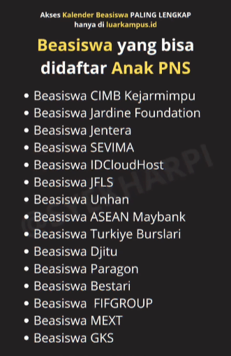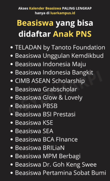 Dan masih banyak lagi beasiswa lainnya yang bisa didaftar oleh anak PNS (https://luarkampus.id/)