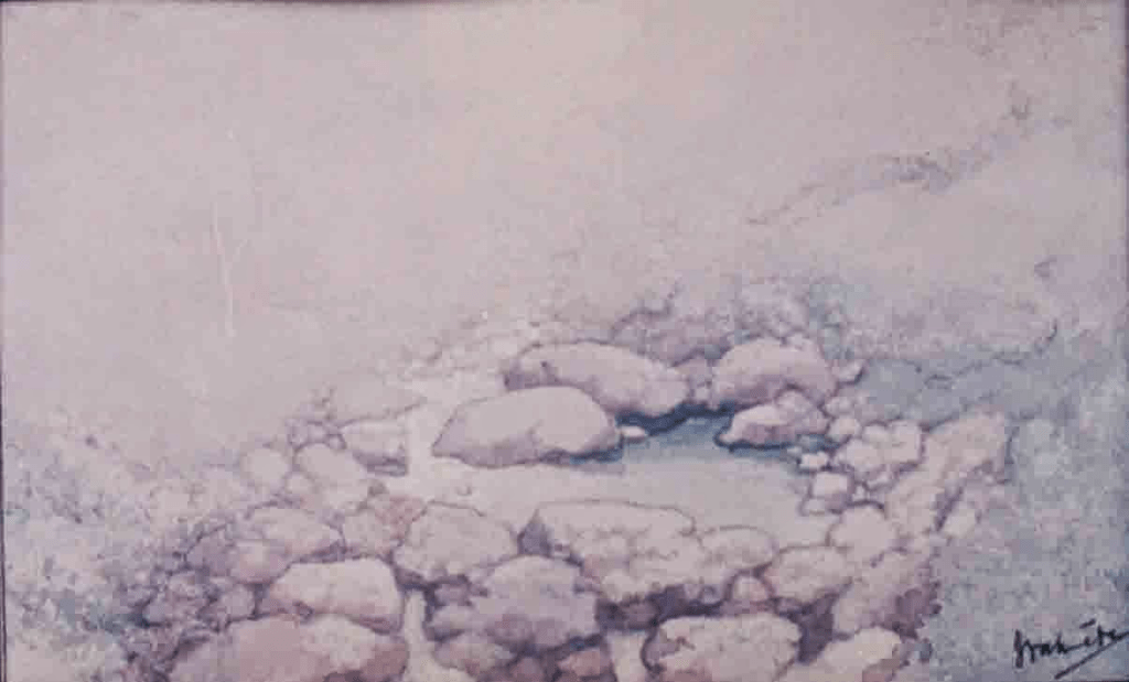 Gambar 4. Wakidi, “Lubuak”, 1973, Water color. Ciri lukisan Wakidi, imaji retakan, bebatuan