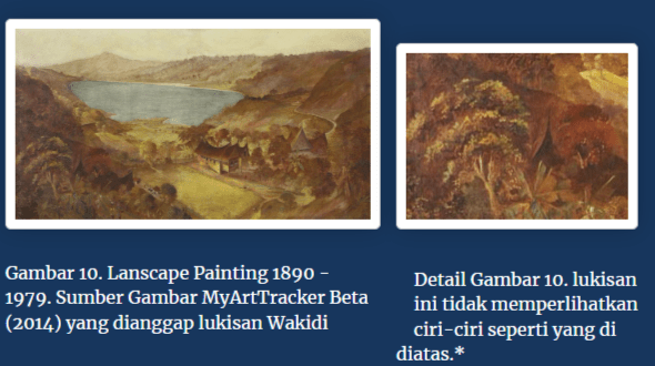 (http://www.myarttracker.com/node/379877/artworks/by-medium), yang beberapa diantaranya penulis ragukan sebagai karya Wakidi.
