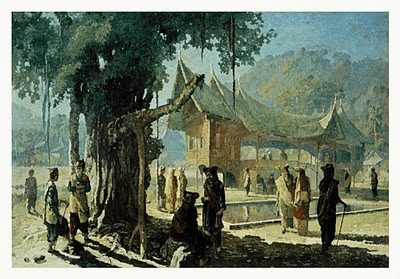 Gambar B. Balai Desa di Minangkabau, Karya ini dikoleksi oleh Presiden pertama RI, Ir. Soekarno di Istana Kepresidenan Jakarta.Sumber Gambar Koleksi Sukarno.**