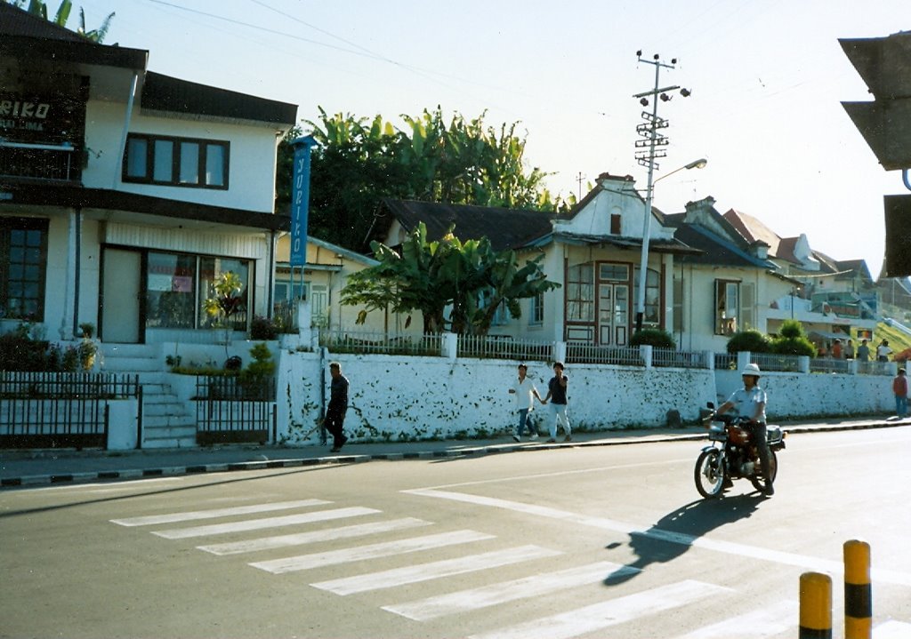 Foto ini berlokasi di Simpang Kangkuang. Bangunan sebelah kiri adalah Yuriko hotel, dahulunya merupakan sebuah apotik yang bernama Karya Pharma.
