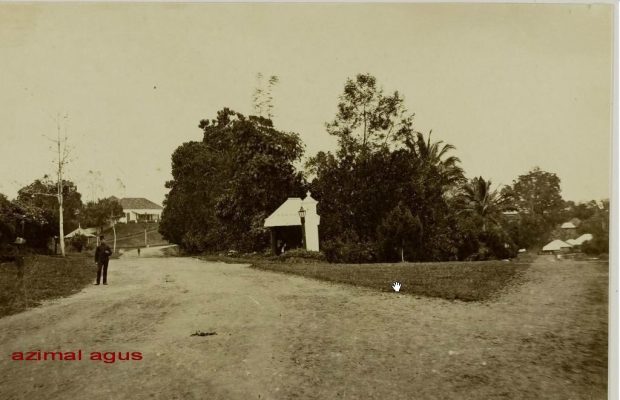 Di sebelah kiri tampak sebuah bangunan di atas bukit, itulah Istana Bung Hatta. Di bawahnya, tepatnya di hadapan gedung DPRD sekarang berdiri sebuah gazebo dan di belakang gazebo tersebutlah bangunan Societeit Belvedere. Belum tampak rupa kota pada masa tersebut dan jalanan masih berupa tanah.