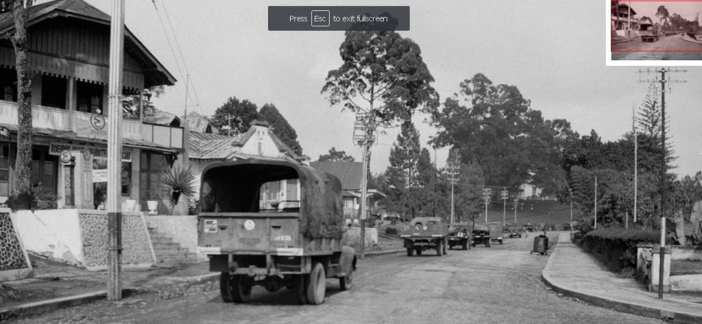 Kemungkinan foto ini diambil pada masa Agresi Belanda II, wajah Simpang Kangkuang tidak begitu jelas karena foto ini diambil tepat di tengah simpang. Bangunan sebelah kiri adalah cikal bakal Hotel Yuriko, yang dulu juga pernah menjadi apotik Karya Pharma.