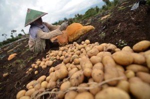 Petani memanen kentang granola di lahan pertanian Resort 10, Kayu Aro, Kerinci, Jambi, Kamis (14/5). Data BPS Jambi, Nilai Tukar Petani (NTP) provinsi itu pada April 2015 kemarin menurun 1,13 persen dari 95,81 poin pada bulan sebelumnya menjadi 94,72 poin akibat turunnya indeks harga yang diterima petani lebih kecil dibanding kenaikan yang dibayar petani. ANTARA FOTO/Wahdi Septiawan/ss/mes/15.