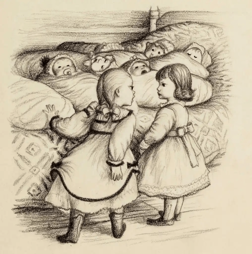 Karya Garth Williams menjadi citra visual definitif untuk seri klasik ini, yang digambarkan The New Yorker sebagai karya yang membantu “anak-anak memahami masa lalu Amerika.” Buku-buku ini sebelumnya diilustrasikan oleh Helen Sewell dengan gaya seni rakyat yang menawan, tetapi kurang menangkap detail cerita atau nuansa realitas yang lebih tinggi. Bandingkan dua versi yang sangat berbeda ini dari sebuah adegan di mana dua sepupu, keduanya bernama Laura Ingalls, berdebat tentang bayi siapa yang lebih cantik.
