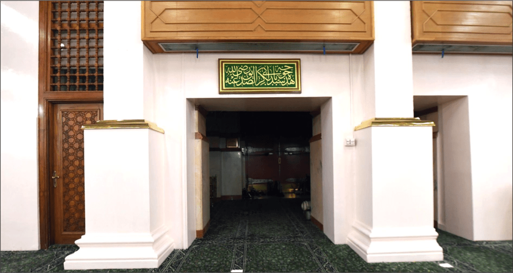 - Asal-usul: Jendela atau pintu ini adalah bagian dari rumah Abu Bakar yang dulunya terhubung langsung ke Masjid Nabawi.