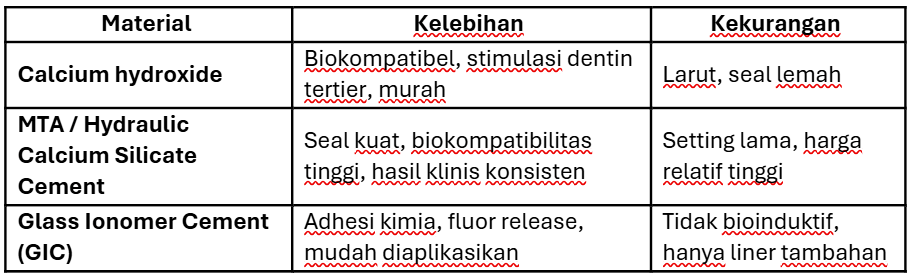 π Pertanyaannya: setelah ini, apa material terbaik untuk melindungi pulpa?