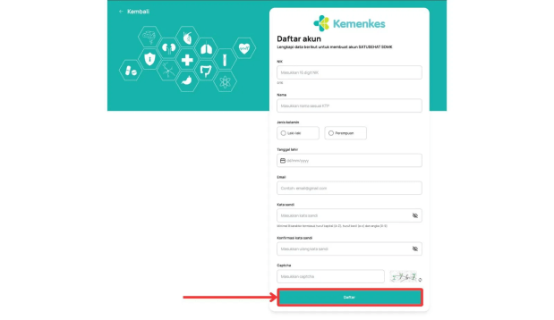 b. Jika belum memiliki akun, lakukan pendaftaran terlebih dahulu.