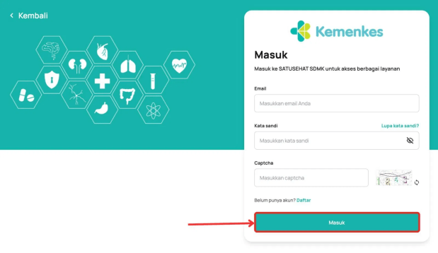 c. Jika sudah terdaftar, login dengan akun yang sudah terdaftar. masukkan email, kata sandi serta captcha. Kemudian Klik “Masuk”