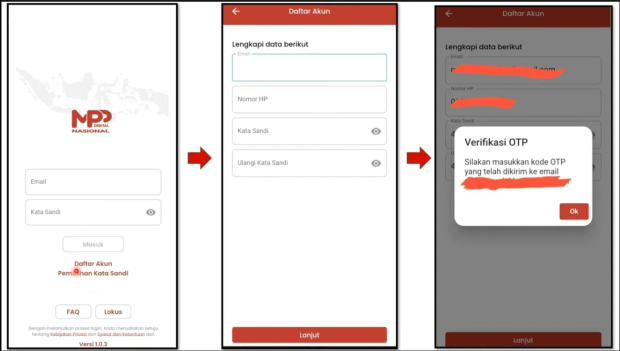 b. Jika belum memiliki akun klik “Daftar Akun”. Isi data yang dibutuhkan kemudian klik “Lanjut”. Verifikasi OTP yang dikirimkan melalui email terdaftar.