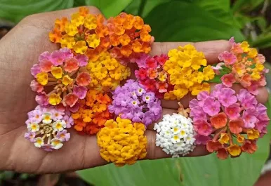Kluster bunga aromatik Lantana (disebut bunga payung) adalah campuran kuntum merah, jingga, kuning, atau biru dan putih. Warna lain ada saat varietas baru dipilih. Bunganya biasanya berubah warna saat dewasa, menghasilkan perbungaan yang memiliki dua atau tiga warna.
