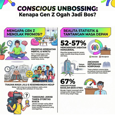 Fenomena conscious unbossing mulai terasa di banyak organisasi. Talenta muda tidak kekurangan ambisi, mereka justru sadar memilih menjauh dari peran middle management yang dianggap penuh tekanan, minim makna, dan rendah otonomi.