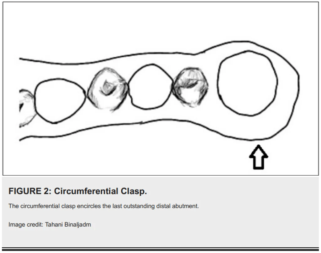 - Figur 2: Circumferential Clasp – Mengelilingi gigi abutment terakhir di area distal.