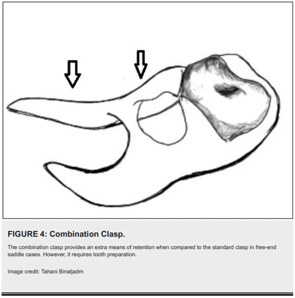 - Figur 4: Combination Clasp – Memberikan retensi yang lebih baik untuk kasus free-end saddle.