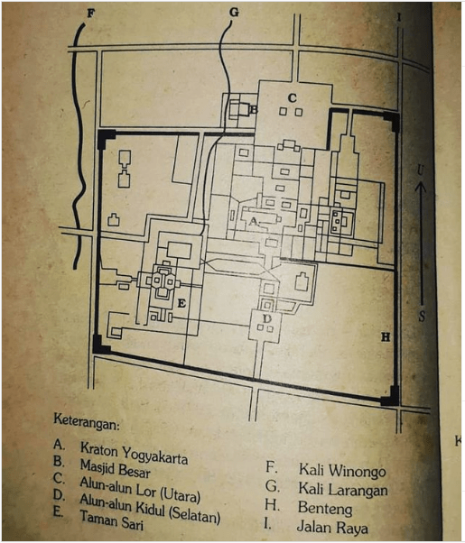 Gambar Kali Larangan (G) dari utara memyeberang jalan Ngabean ke Masjid Gedhe Kauman lalu ke arah segaran Tamansari