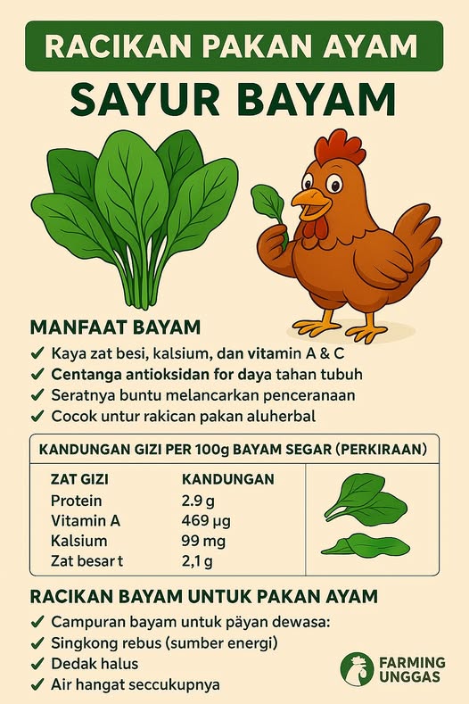 🥣 Racikan Bayam untuk Pakan Ayam Dewasa