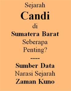 Lantas bagaimana sejarah candi di Sumatera bagian tengah khususnya di provinsi Sumatera Barat? Boleh jadi sudah ada yang menulisnya. Lalu apa pentingnya sejarah candi-candi tersebut? Seperti disebut di atas, data candi dan benda kepurbakalaan lainnya akan memperkaya narasi sejarah yang ada. Darimana sejarahnya dimulai. Seperti kata ahli sejarah tempo doeloe, semuanya ada permulaan. Untuk menambah pengetahuan dan meningkatkan wawasan sejarah nasional, mari kita telusuri sumber-sumber tempo doeloe.