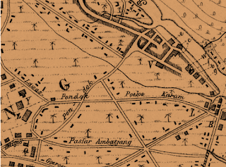 Ke utara: sepanjang jalan Cantioe hingga Poeloekaram dan batas-batas utara persi no. 1531, 1530 dan 166, ke timur dan perbatasan utara-timur kiri persil no. 1561, batas antara Poeloe Ayer dan Kampong Palinggam; selatan, sungai besar Batang Arau; ke barat Kali Ketjil, pipa waterleiding garis yang ke arah barat sejauh seratus meter dari sisi barat dari jalan P’oeloe Karam dan melalui Pondok ke tempat itu garis jalan melalui Kampong Sablah dan lebih lanjut.